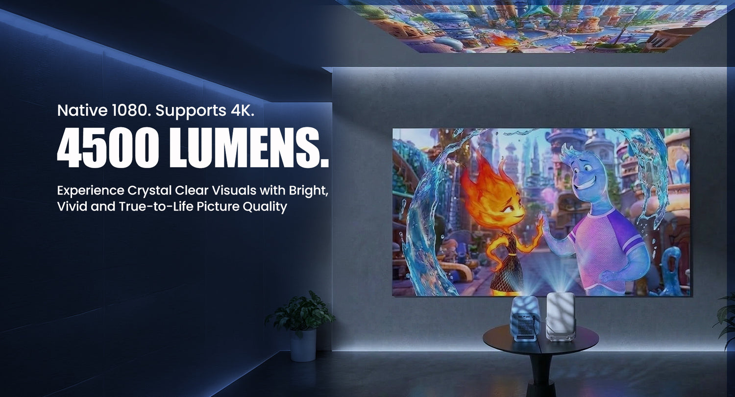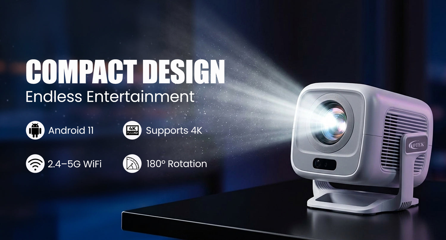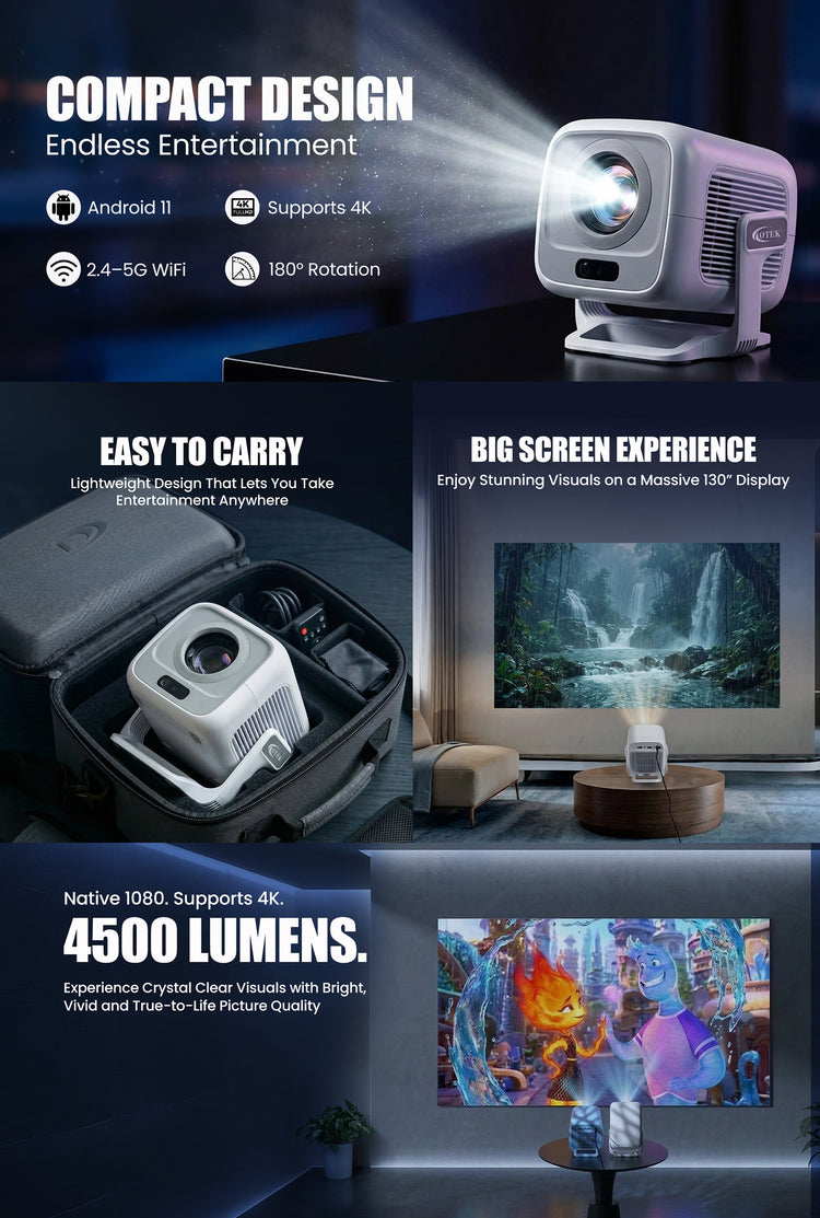 OTEK PIXA FHD Smart Projector | Inbuilt Netflix & Prime | 1080P | 4K Support | Android 11 | 4500 Lumens | Auto Focus & Keystone | WiFi & Bluetooth | Portable Home & Office