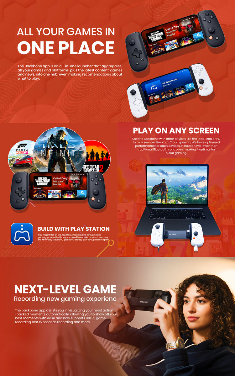- EARLY ACCESS TO THE BACKBONE APP - The Backbone app is your gaming destination–the feature-rich home for gaming on mobile devices complete with 20+ unique features. Record and share gameplay, party up with friends, and launch your favorite games all from one place