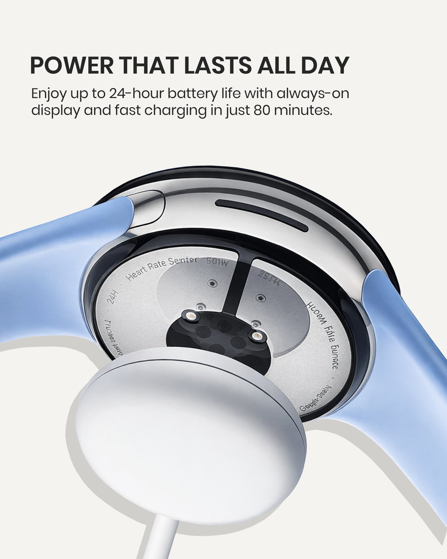 • Pixel Watch 2 brings Google apps and services to your wrist with Google Assistant, Gmail, Calendar and more.