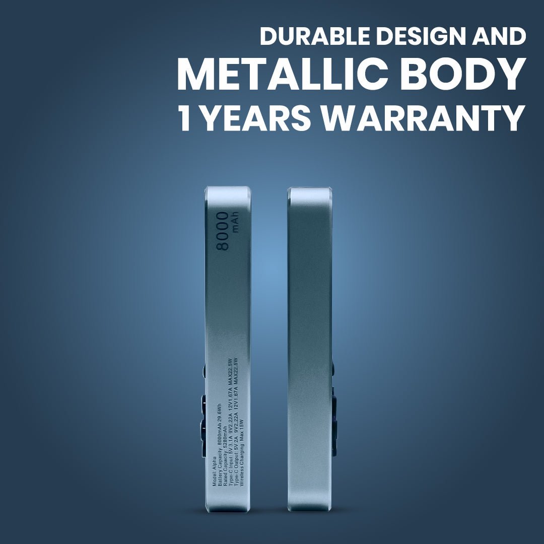 • Sturdy Magnetic Grip: Charge your devices securely with wireless magnetic powerbank compatible with magsafe technology, ensuring your device stays in place during wireless charging. freedom of wireless charging.Ensuring you never run out of battery on the go. Jinx 2 in 1 Wireless Power Bank is compatible with smartphones, tablets, earbuds, neckbands, speakers, smartwatches, and other USB-powered devices